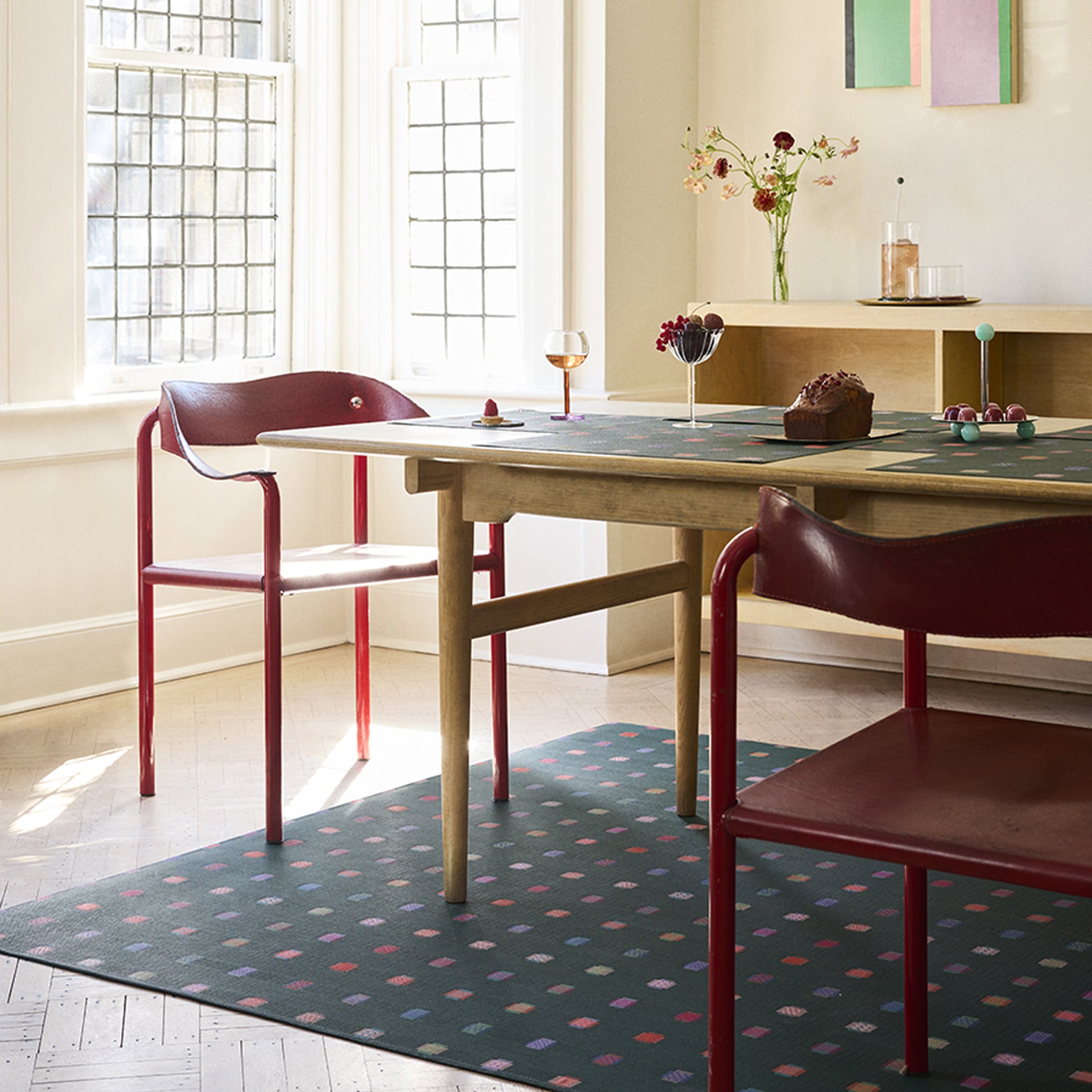 The dynamic Sampler Placemat from Sandy Chilewich features a distinctive weave of overlapping paired rectangles. The design is inspired by samplers that were used to learn and demonstrate darning—a sewing technique for repairing holes or worn areas in fabric by replicating the structure of the original material. (A technique that dates back to the 18th century.) Suitable for both indoor and outdoor use, the Chilewich Sampler Placemat is made in the USA with TerraStrand® and Microban®. Free of phthalates. The Chilewich Sampler Placemat measures 14l x 19"w.