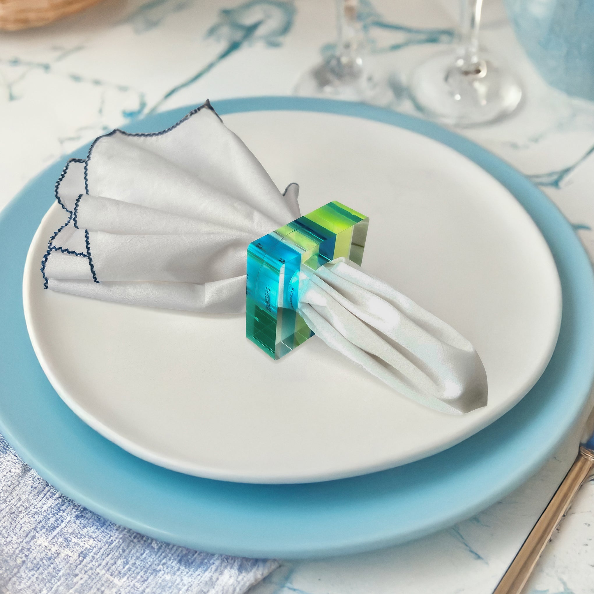 MoMA Exclusive: From Nicolai Canetti, the NYC-based designer known for bringing postmodernist design into people’s homes in the 1980s, comes this set of four acrylic Chromatic Napkin Rings. Each ring is rendered in a different shape—square, circle, octagon and A-shape—with brilliant accents of color. The layering effect of the acrylic brings light and colorplay to your table settings. Each Chromatic Napkin Ring measures 1h x 2w x 2d". Postmodern designs are represented in MoMA’s collection