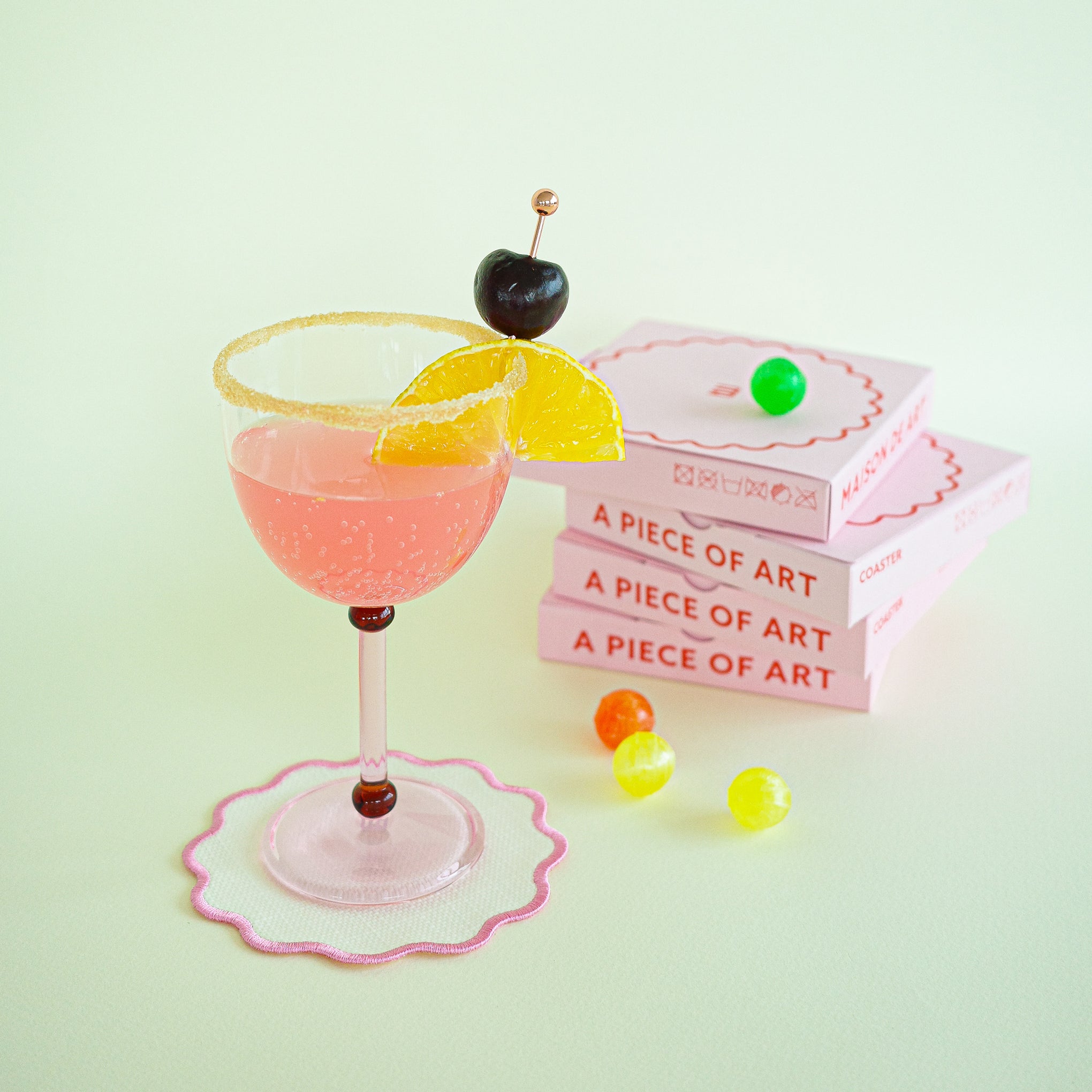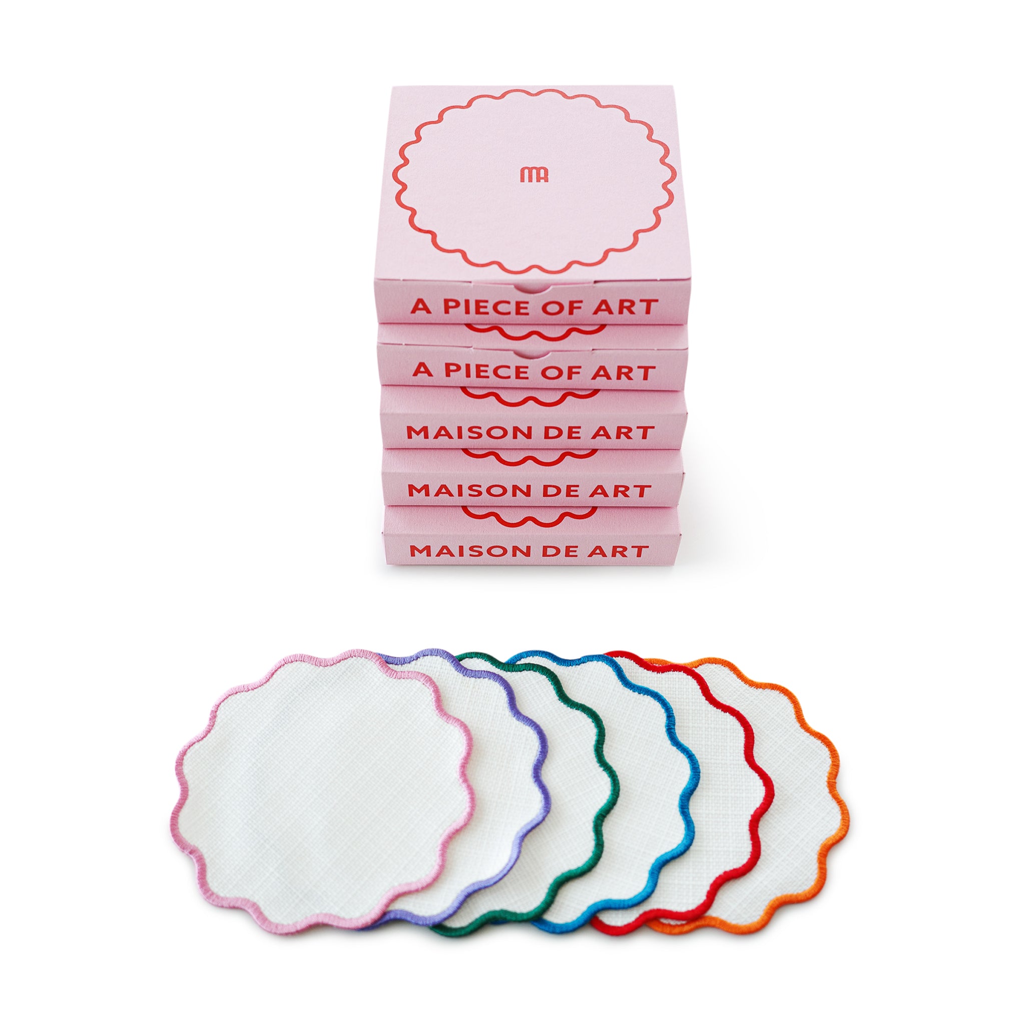 MoMA Exclusive: Designed in the shape of a minimalist flower and traced with embroidered outlines of color, these six Floria Coasters are an elegant addition to your gatherings. They’re made from woven polyester fabric coated in waterproof TPU so they are reusable and easy to clean: just wipe with a damp cloth. The Floria Coasters are outlined in six different colors—purple, blue, orange, pink, red and green—and each measures 4.4”diam.