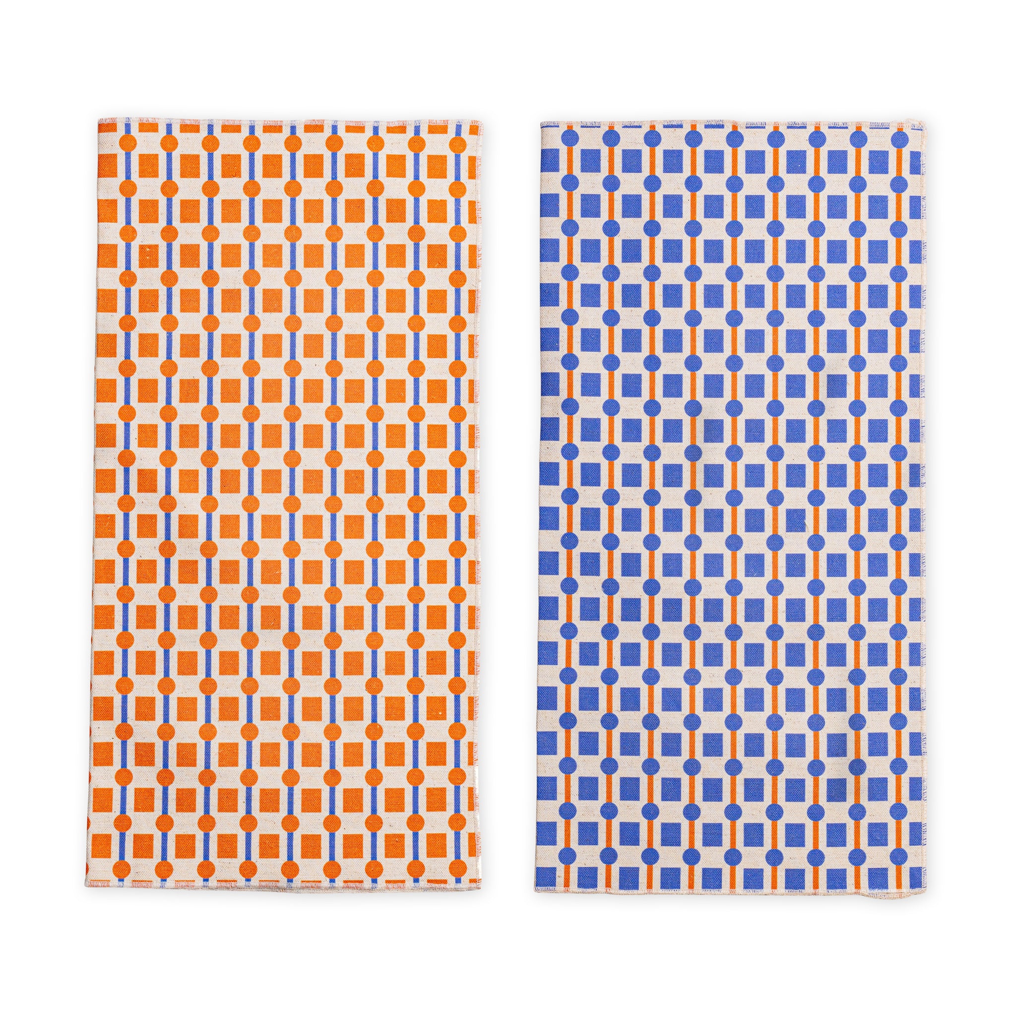 MoMA Exclusive: For these reusable cotton and linen napkins, designer Aaliyah Makoni was inspired by the bold and vibrant patterns of geometric designs of various African nations. The napkins are handmade and printed using water-based eco-textile pigment inks. Made in South Africa, each of these Geometric Cotton & Linen Napkins measure 17.7h x 17.7”w. Set of two. Hand wash only.