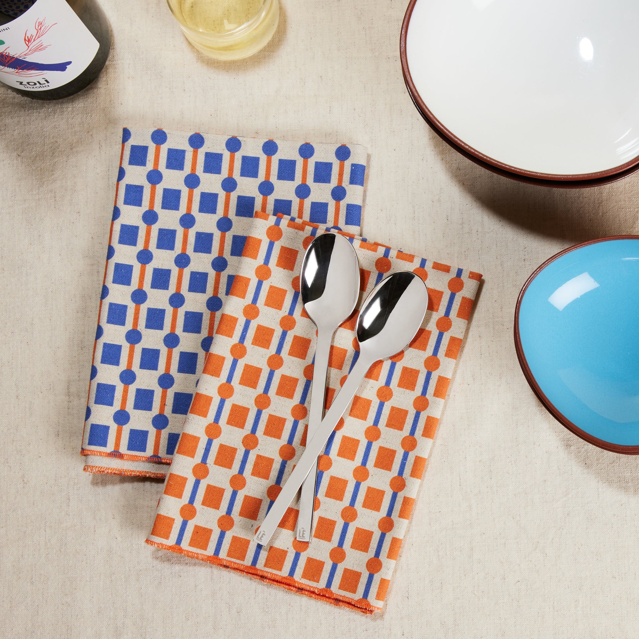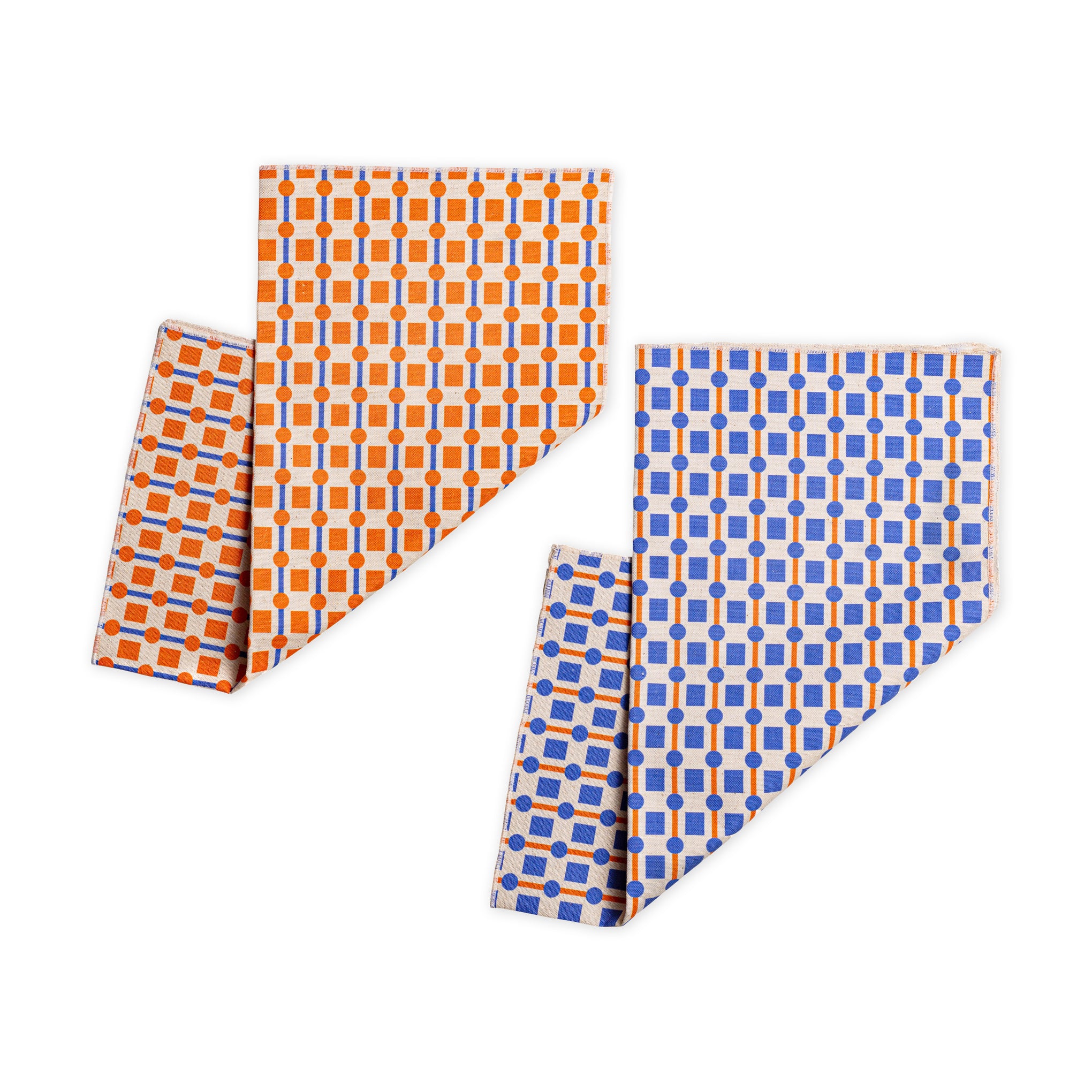 Geometric Cotton & Linen Napkins - Set of 2 - Orange/ Blue