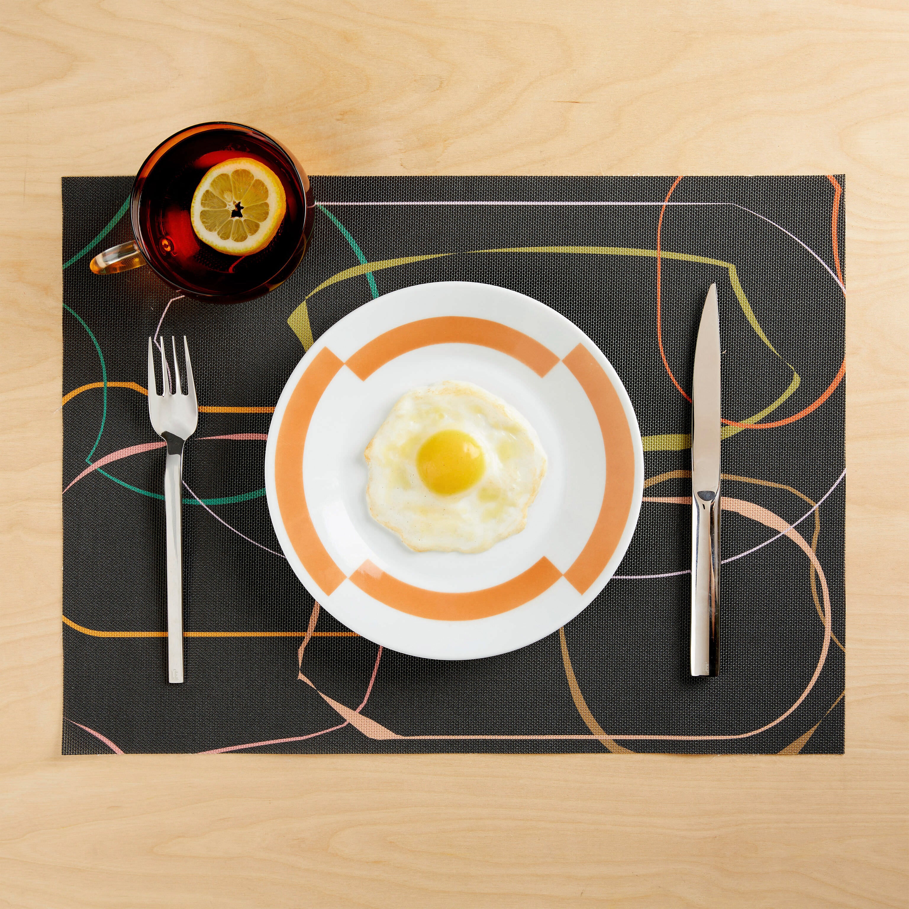 Geometric Cotton & Linen Placemats - Set of 2 - Black/ Orange