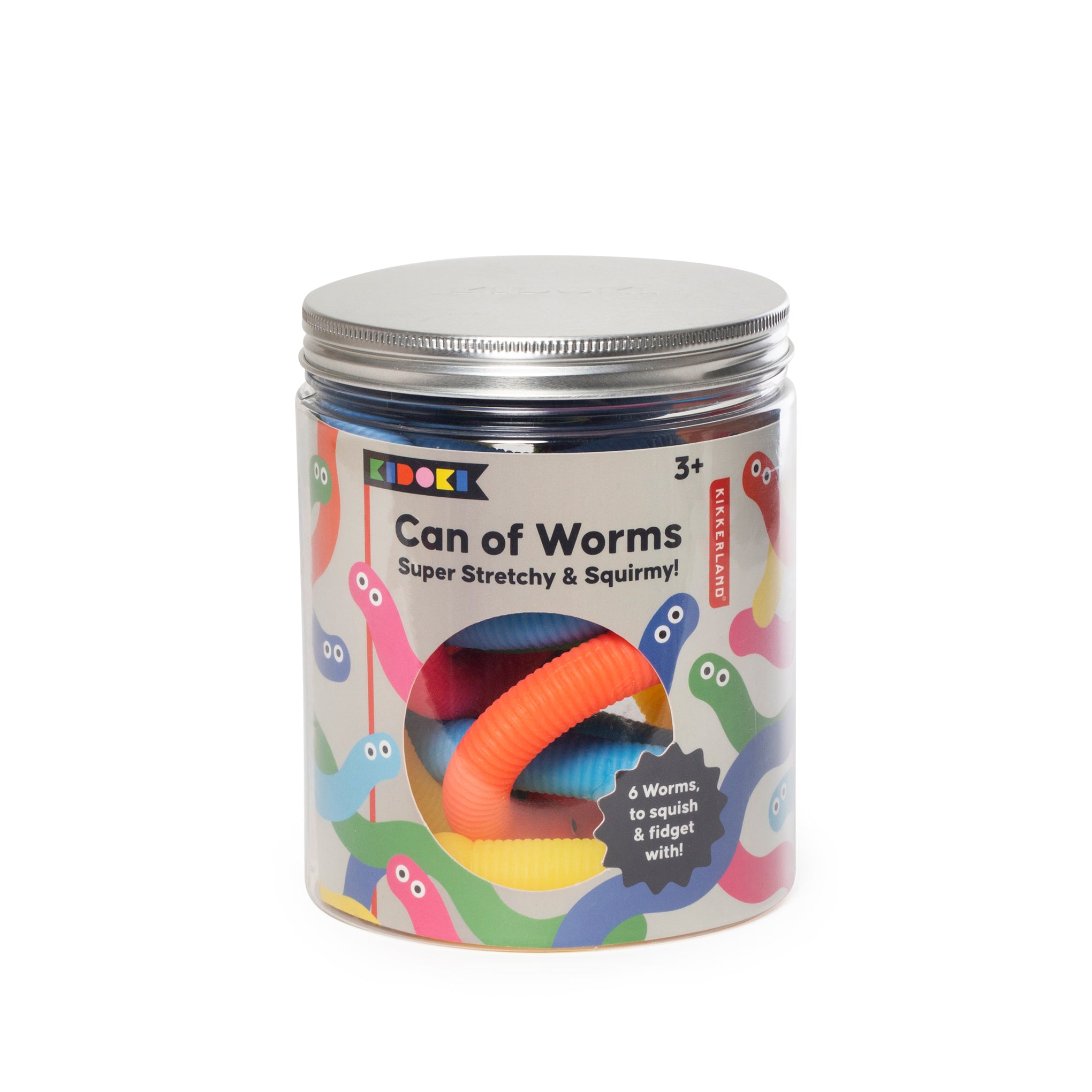If you’ve never opened a can of worms just to see what will happen, now’s your chance to do it and experience the consequences: pure fun! Inside the innocuous can are six stretchy, googly-eyed worms designed to be squeezed, pulled, fidgeted with and played with by kids three and up. Crafted from safe, non-toxic materials, the worms provide tactile stress relief, sensory stimulation and hours of fun for all who encounter them. Made of TPR and PET plastic with an aluminum lid and a label made from FSC paper, the Can of Worms measures 4.5h x 3.75” diam. Each worm measures 12.25l x 0.5” diam. For ages 3+.