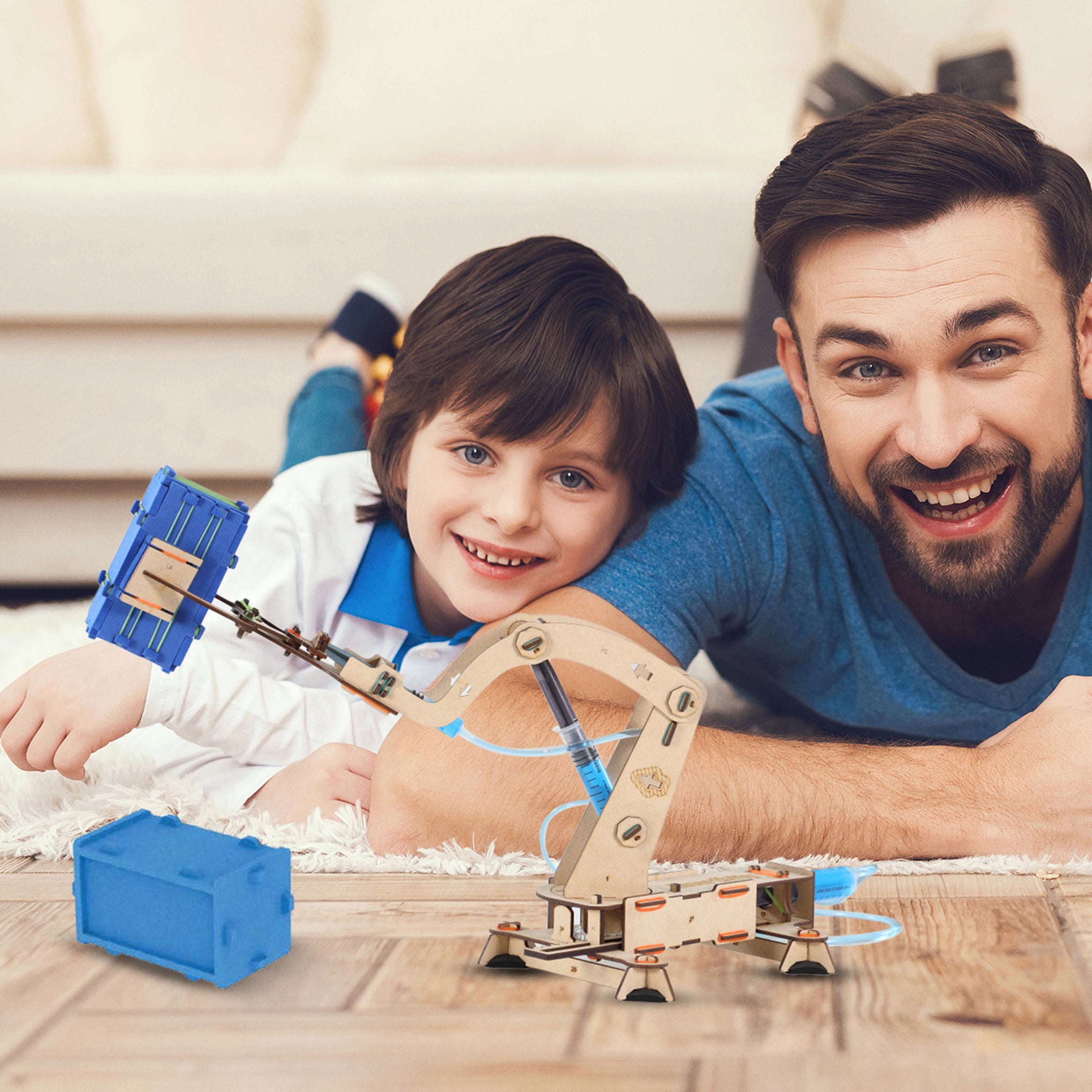 A robotic Stem toy, this DIY design allows kids to build their own fully functional crane. Once built, kids can maneuver the Hydraulic Crane Toy using its two axes to grab, lift and hold objects with its claspable jaw. This is all operated through simple syringes filled with water. A great design for kids who love construction toys, the Hydraulic Crane DIY Stem Toy provides a rewarding challenge for young builders. All of this is backed by the STEAM framework of learning: science, technology, engineering, arts and mathematics. Made of MDF, plastic, foam, rubber and paper, the Hydraulic Crane Toy comes in a box that measures 1.75h x 13w x 13”d. For ages 8+.