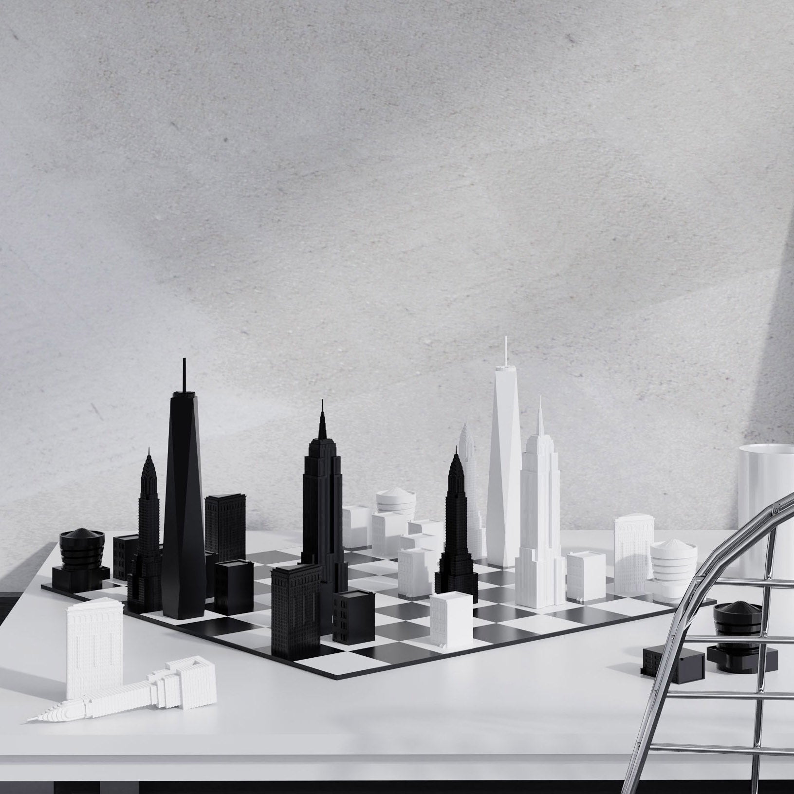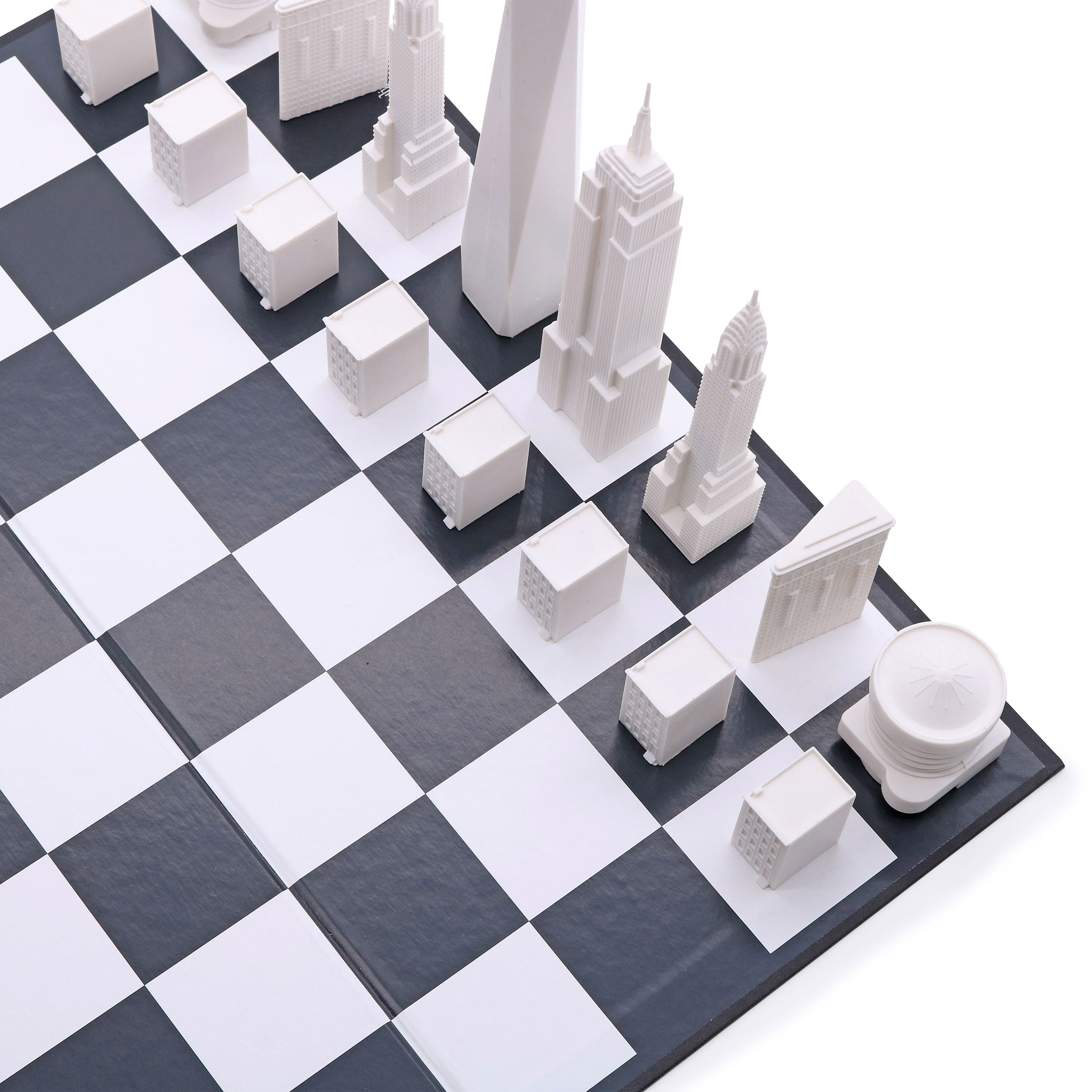 When the Flatiron Building and the Empire State Building have your Freedom Tower in checkmate, you know your chess game has been taken to new heights. Celebrate New York’s diverse architecture with this handsome chess set. Includes 32 double-weighted acrylic pieces with soft felt bases, and a folding board.