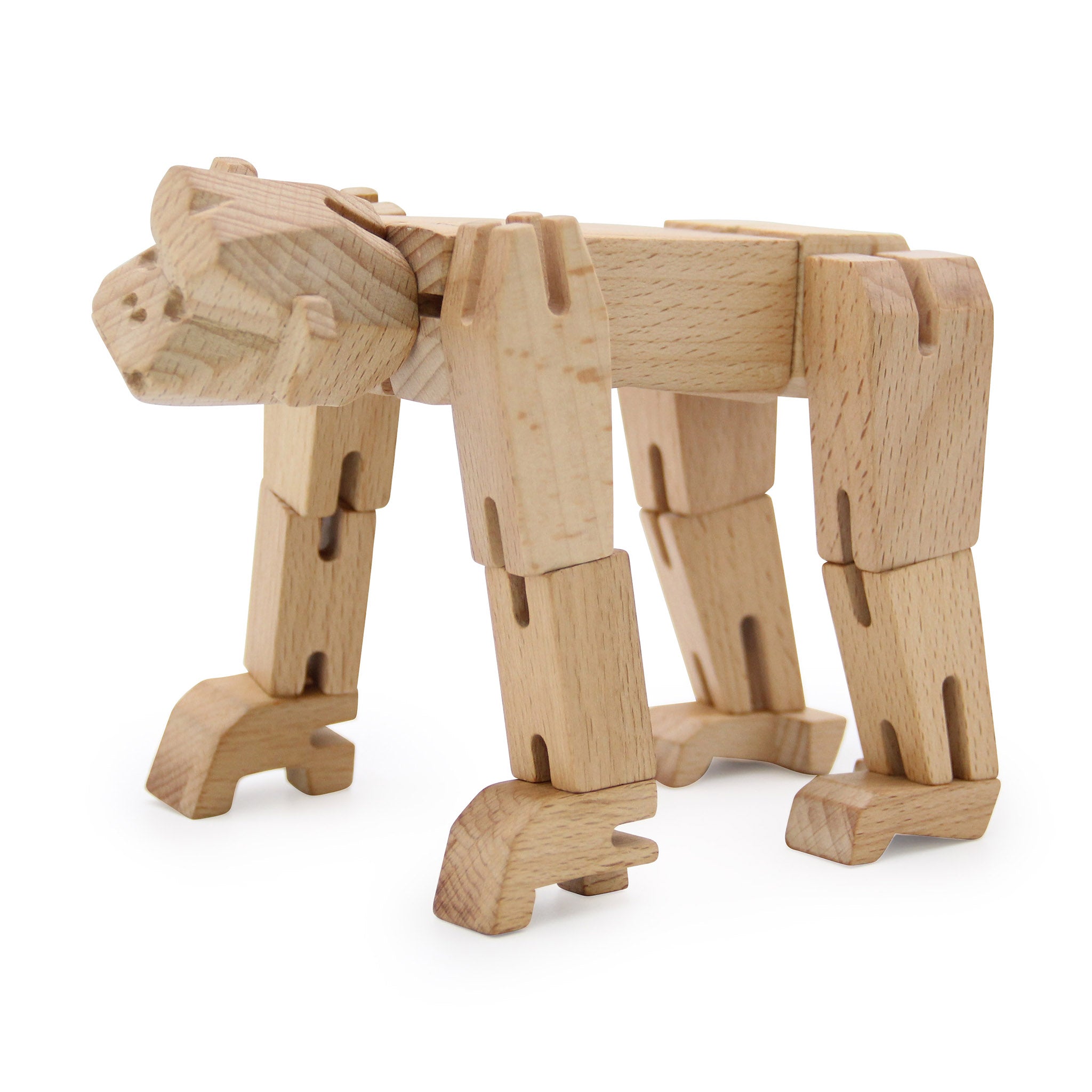 The Wooden Animal Puzzle Toy is the newest addition to the wooden Morphits® toy family. This wooden puzzle is a challenging test of your puzzle-solving skills. It comes out of the box looking nothing like its tall, final form—It’s up to you to maneuver the connected pieces into the shape of the friend you’d see at the zoo or on a safari. The Wooden Animal Puzzle Toy is made from beechwood and was designed by Yoshi Ito. To clean, gently dust with a dry cloth. It measures 3.35h x 3w x 2.4"d as the cube and 11.80h x 7.4w x 2.4"d standing tall. Recommended for ages 13+.