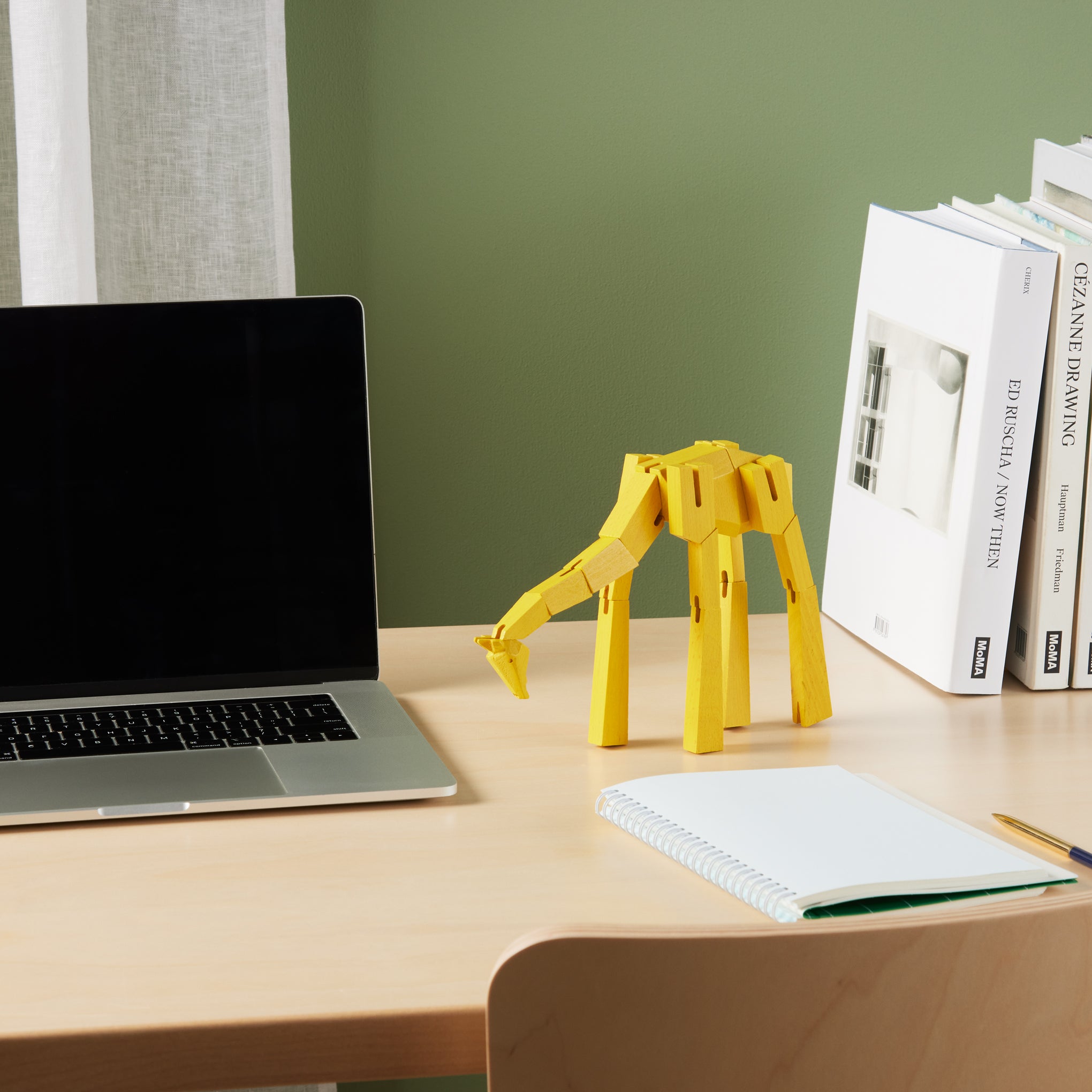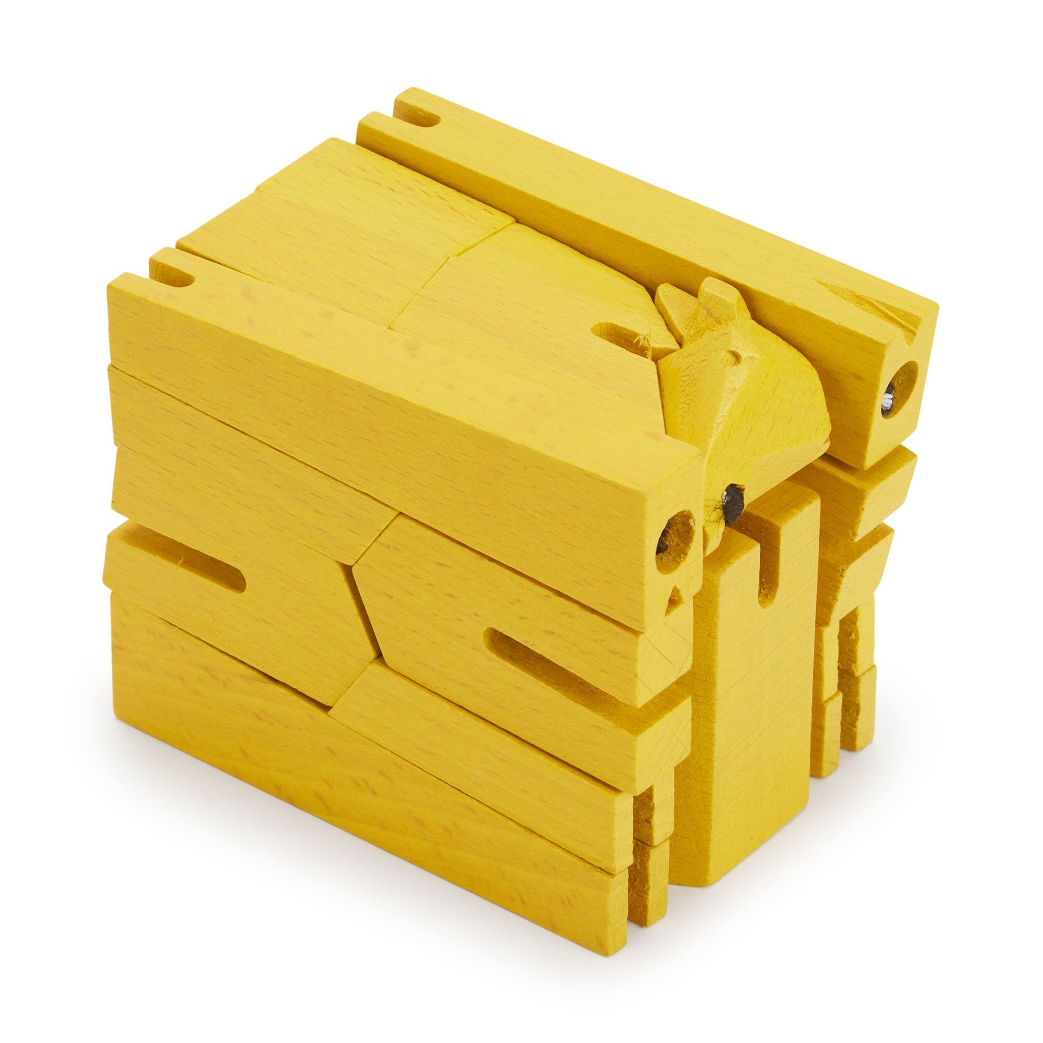 The Wooden Animal Puzzle Toy is the newest addition to the wooden Morphits® toy family. This wooden puzzle is a challenging test of your puzzle-solving skills. It comes out of the box looking nothing like its tall, final form—It’s up to you to maneuver the connected pieces into the shape of the friend you’d see at the zoo or on a safari. The Wooden Animal Puzzle Toy is made from beechwood and was designed by Yoshi Ito. To clean, gently dust with a dry cloth. It measures 3.35h x 3w x 2.4"d as the cube and 11.80h x 7.4w x 2.4"d standing tall. Recommended for ages 13+.