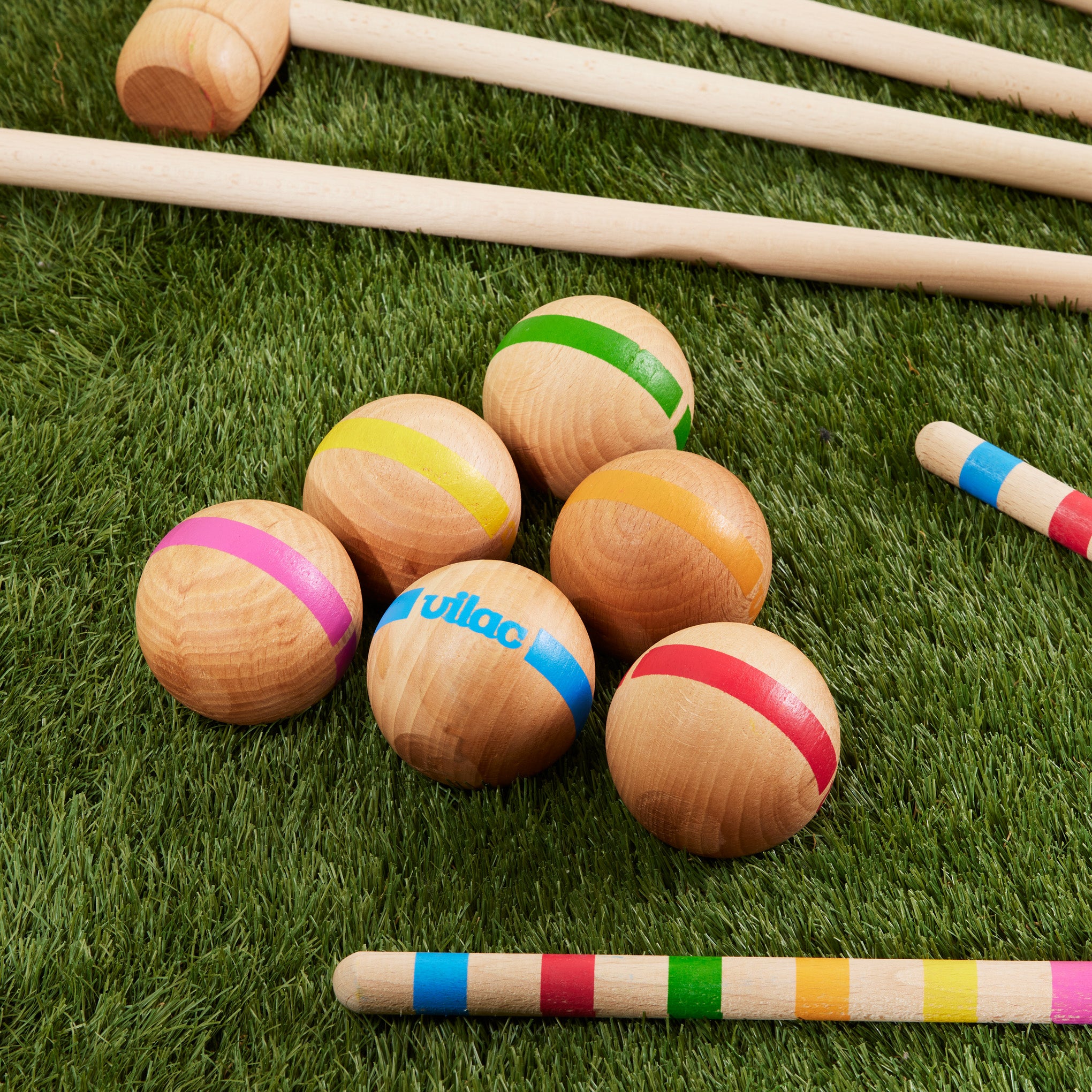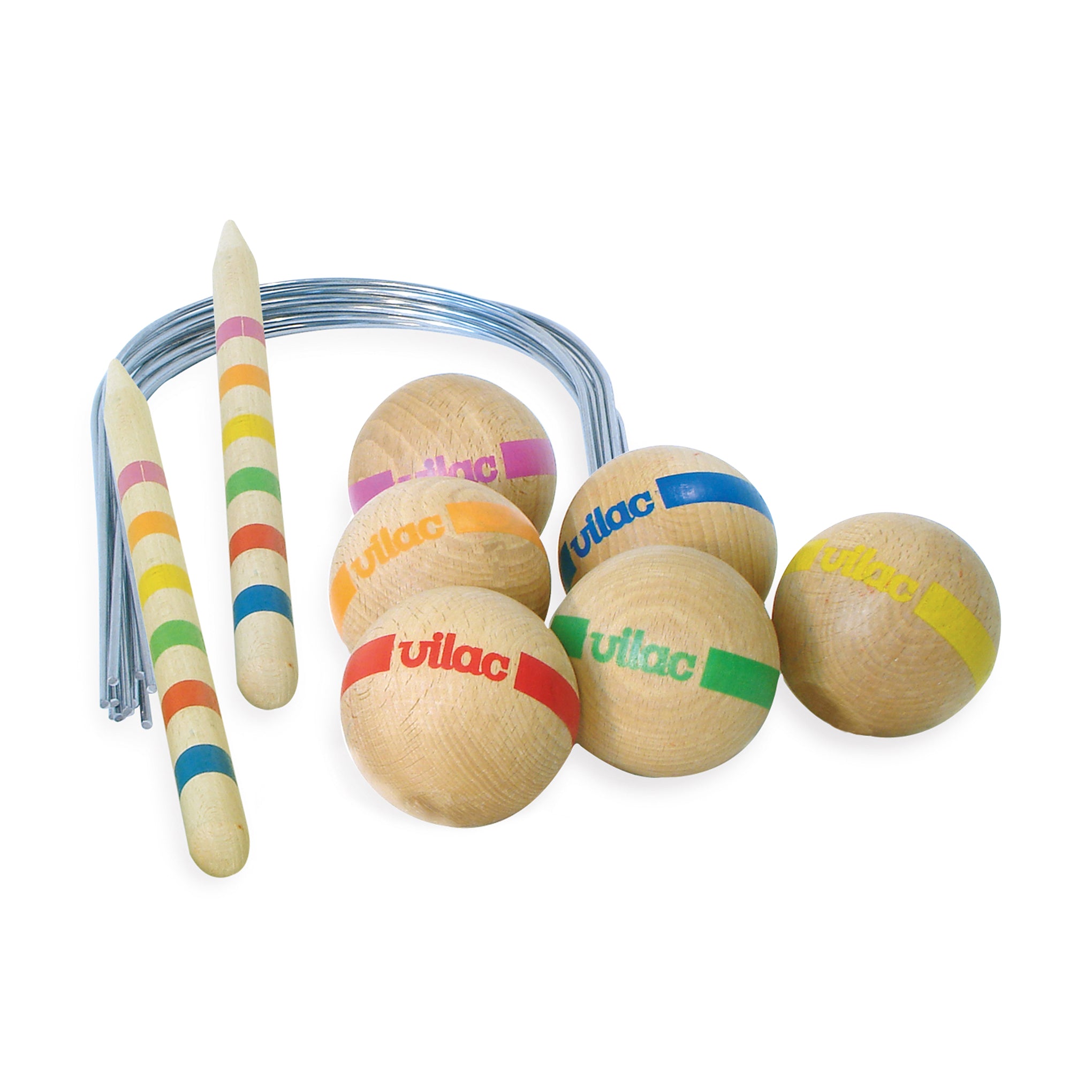 Made in France by heritage toy manufacturer Vilac, this premium croquet set is made to last and can be enjoyed by kids and adults alike. The set includes everything you need for a game of up to six players: six mallets and six balls made from high-quality beechwood, two beech wood stakes and ten chrome-iron hoops. The handles of the mallets and the balls are accented with six different bright colors. The set also includes a large durable canvas bag (33.5”h) for holding all components of the game and game rules in five different languages. Vilac had designs that were featured in MoMA’s 2012 exhibition Century of the Child: Growing by Design, 1900–2000. For ages 5+.